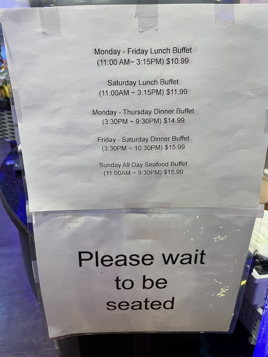 This menu is suitable for casual dining occasions, including lunch and dinner, where guests can enjoy a diverse selection of dishes at a buffet. It is designed for customers seeking a variety of Asian flavors including traditional Chinese and seafood options in a single location.